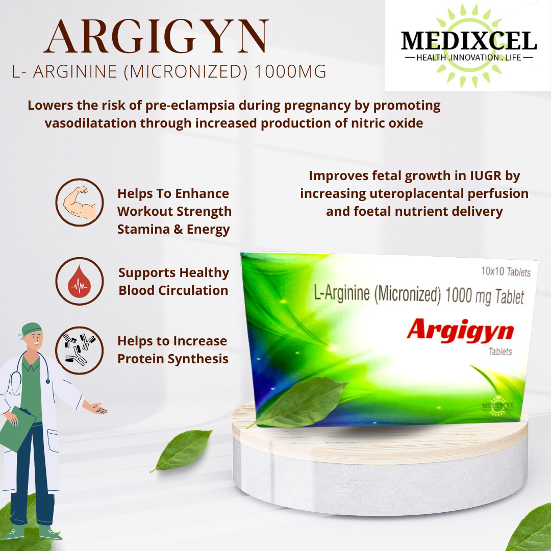 ARGIGYN (L Arginin) Helps you in improved pregnancy outcomes, Healthy Blood Circulation and more. | Medixcel Pharmaceuticals